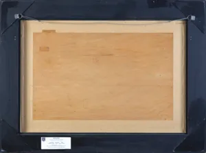 na odwrocie l.g. słabo czytelna pieczęć poznańskiej galerii; centralnie okrągła pieczęć : JERZY KOSSAK | Kraków pl. Kossaka 4; w centralnej części pieczęci herb Kos | Nr 0326