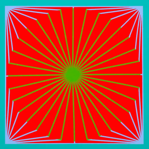 grafika w papierowej obwolucie; przy dolnej krawędzi obwoluty wydrukowany napis l.: Richard Anuszkiewicz: Christmas Star, © 1965, The Museum of Modern Art, New York, p: Printed for The Museum of Modern Art by Chiron Press, New York