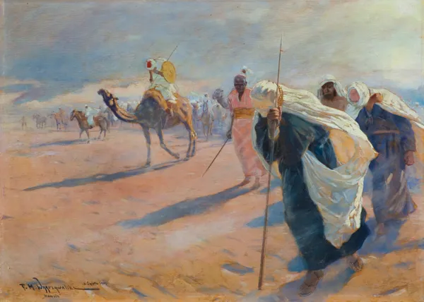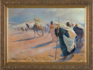 W 1906 roku Feliks Michał Wygrzywalski wyruszył w podróż do Egiptu. Czas tam spędzony zaowocował licznymi obrazami o tematyce orientalnej (Modlitwy Arabów, Sprzedawcy dywanów czy sceny z haremów). Prezentowany obraz uchwycił moment nadejścia hamsinu, gwałtownego południowego wiatru. Znany też jako samum, jest wiatrem występującym na pustyniach Afryki Północnej i Półwyspu Arabskiego. Na obrazie widzimy karawanę, w które...