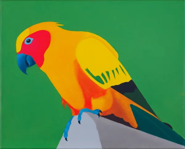 sygn. na odwr. na płótne: ANTONI-JANUSZ | WOJNAROWSKI | PAPUGA *3 | OLEJ /PŁÓT.| 33 X 41 CM. | 2020 r. AJW 2020.
