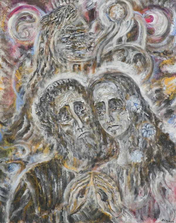 sygn. p.d.: ZLACHUR, na odwr. na płycie śr.: POTĘGA | MIŁOŚCI | 1993 | mal. ZLachur