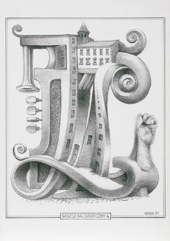 sygn. p.d.: YERKA 21, śr. d.: GĄSZCZ KALIGRAFICZNY -L [w ramce]