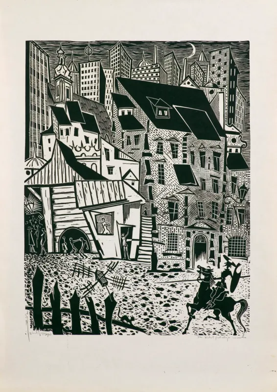 sygn. oł. l.d.: SRassalski 1963, pod ryc. p.: Don Kichot patroluje miasto