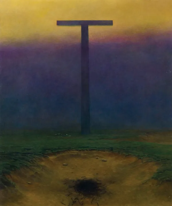 Motyw krzyża był obecny na każdym etapie twórczości artysty, który – szczególnie w obrazach z lat 80. – nadawał mu formę odległą od ikonicznego, łacińskiego ujęcia. Dominujące w apokaliptycznym pej zażu majestatyczne konstrukcje były zazwyczaj pozbawione górnej części pionowej belki i rozpiętej na ramionach ukrzyżowanej postaci. O swojej fascynacji tematem krucyfiksu i jego malarskiej kreacji, artysta opowiadał w jednym z wywiadów wieloletniemu dyrektorowi Muzeum Historycznego w Sano ku, Wiesławowi Banachowi: