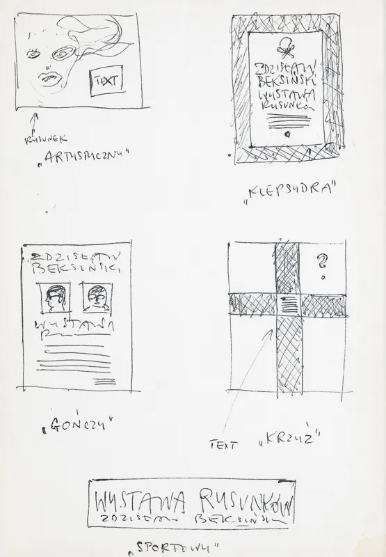 Szkice 5 projektów plakatu: Zdzisław Beksiński. Wystawa rysunków, lata 60-70. XX w.