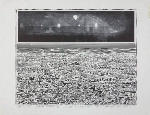 sygn. oł. pod ryc.: "Plaża III" Epreuve dartiste 1/1. linoryt + monotypia 1964. (AP.) Henryk Płóciennik.