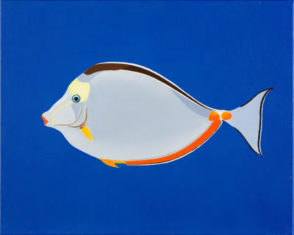 sygn. na odwr. na płótnie g.: ANTONI–JANUSZ | WOJNAROWSKI | RYBA EGZOTYCZNA | NASO LITURATUS | OLEJ/PŁÓTNO | 33 x 41 CM. | 2021 r., obok monogram wiązany AJW | 2021.