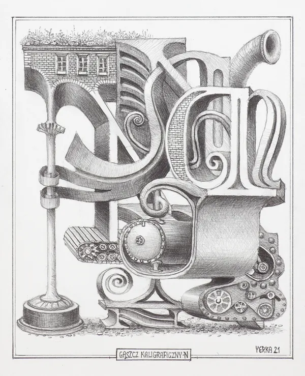 sygn. p.d.: YERKA 21, śr.d.: GĄSZCZ KALIGRAFICZNY – N [w ramce]