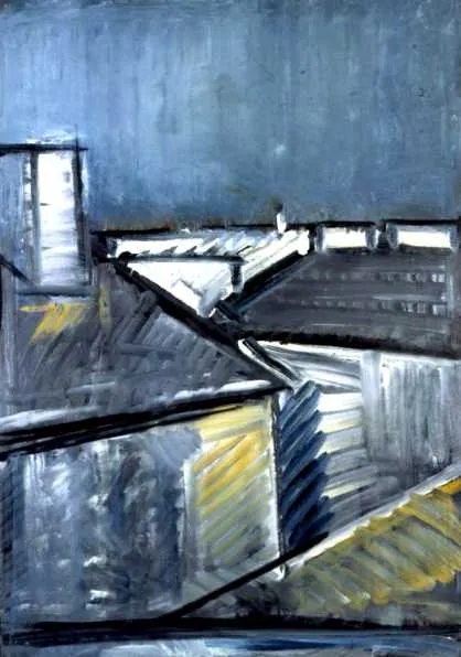 sygnowany na odwr. p.g.: Jacek Sienicki / ol. pł. / „dachy” / 1976.