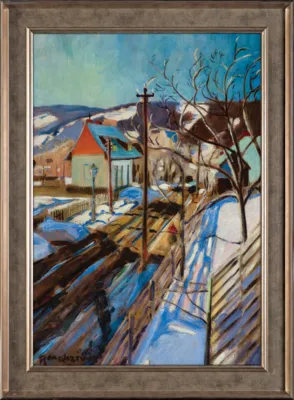 Pejzaże z góralską architekturą artysta malował już od początku lat 20. Prezentowany obraz jest znakomitym przykładem, charakterystycznej dla tego okresu, twórczości Malczewskiego, o której tak pisał: Podłożem powstania obrazu jest pewien stan napięcia uczuciowego, które łączy mnie z jakimś wycinkiem widzialnego świata, dostrzeżonym naraz. Moment ów daje impuls do stworzenia kompozycji, w której ów stan zmieści się cały, malarskiemi środkami objawiony. [...] Kompozycja na płaszczyźnie jest u mnie szeregiem selekcyj i eliminacji zbytecznych, moim zdaniem przedmiotów, nie tylko z powodu tkwiących we mnie wyobrażeń czysto malarsko-rzemieślniczych o obrazie, ale i z uwagi na wywołanie w widzu tegoż napięcia, które we mnie powstało i trwa. [...] Z drugiej jednak strony, jakiś dla mnie układ barwny, w tym momencie ten jedyny istotny, musi być przeniesionym z rzeczywistości bodźcem, działającym współrzędnie z wyżej wymienionym stanem. Inaczej wszystko przemija i zaciera się, pozbawione konieczności wypowiedzenia się malarskiego. [...] Barwa jest w danej chwili uciechą, odkryciem (dla mnie), radością czysto zmysłowego gatunku, formą wyłuskaną skrzętnie z otaczającego świata, wyrazem napięcia uczuciowego, czegoś boleśnie drogiego, z czem rozstać się trudno, a pragnie się z kimś podzielić. (R. Malczewski, Moje malarstwo, „Plastyka“, nr 1, 1930, s. 3-4)