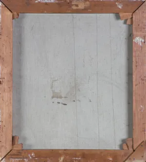 Na odwrocie, na górnej listwie krosna, prostokątne nalepki z granatowym obramowaniem; ponadto na ramie dwie nalepki w języku niemieckim.