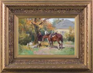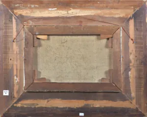 Na odwrocie na lewej listwie ramy nalepka domu aukcyjnego w Łodzi.
