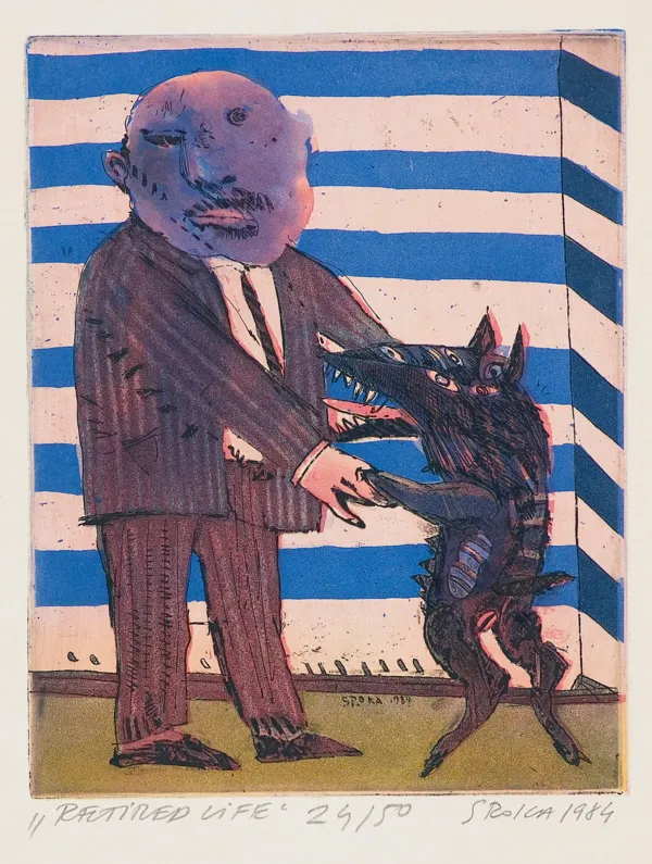 sygn. oł. pod ryc. : „RETIRED LIFE” 24/50 SROKA 1984