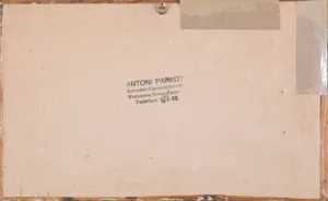Na zaplecku pieczęć: ANTONI PARKOT | Sprzedaż i Oprawa Obrazów | Warszawa Nowy Świat 17 | Telefon 513-28