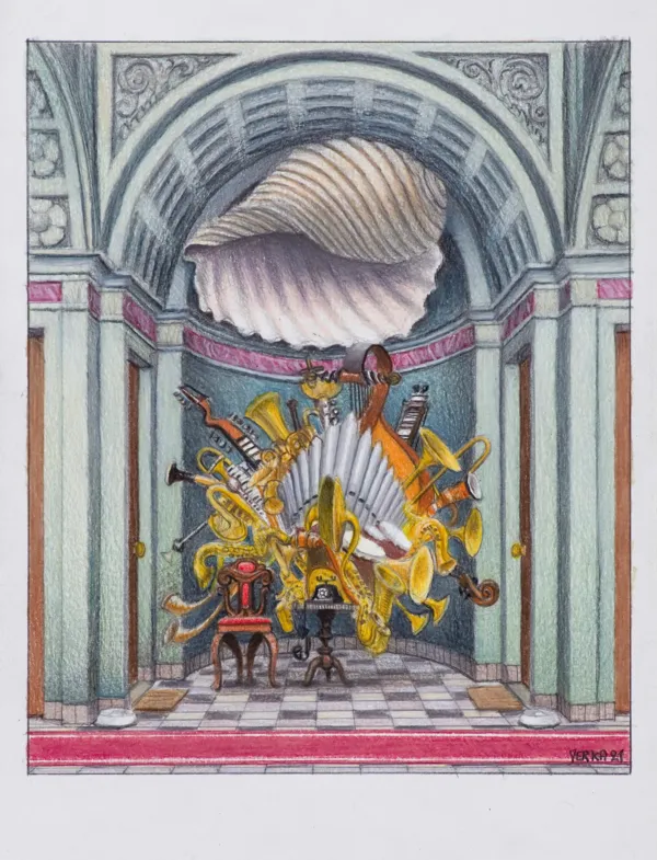 sygn. oł. p.d.: YERKA 21, na odwr. p.d. oł.: JACEK YERKA | «GRANIE NA CZEKANIE WG PIERA» | 2021
