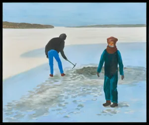 sygn. na odwr. na płótnie: 2021 [w kółku] | Jarosław | Modzelewski | „Przerębel“ | 100 x 120 | tempera jajowa