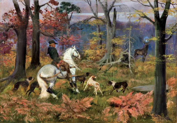 W listopadzie 1937 roku, na Międzynarodowej Wystawie Łowieckiej w Berlinie, Jerzy Kossak zaprezentował Świętego Huberta na polowaniu. Obraz ten został wyróżniony brązowym medalem.