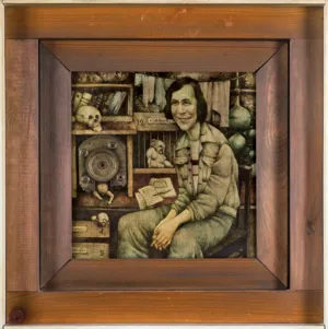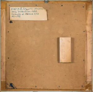 na odwr. na płycie naklejona nalepka wypełniona flamastrem: POETA II / olej, pilśń. 24 x 24 cm / | Jerzy Duda-Gracz. 1974. | Katowice ul. Grabowa 5/14 | 40-172, na desce naklejonej na płytę napis oł.: DEP 30