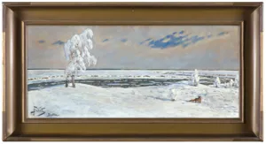 Na odwrocie dwukrotnie owalny stempel: OBRAZY ORYGINALNE | MALARZY POLSKICH | MAK[SYMIJAN] RÜBNER | KRAKÓW, RYNEK GŁ. 11.; centralnie numer (niebieską kredką): 2339 [przekreślony], powyżej numer (niebieskim długopisem): 16/40 [w ramce]; ponadto notatki ramiarskie (oł.): 32,5 [...] | 2. IX. 40 i 71 1/2 x 317 [...] | dnia 22VIII.