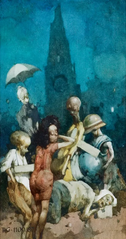 Prezentowane obrazy (poz. 124 i 125) są mniejszymi wersjami skrzydeł tryptyku Berliński powstałego w 1985 r. (por. Obraz 1036. Berliński i Obraz 1038. Berliński, oba o wymiarach 122 x 80 cm [w:] Duda Gracz, tekst: Ireneusz J. Kamiński, wybór ilustracji, oprac. biografii i bibliografii: Agata Duda Gracz, wyd. Penta, Warszawa 1997, poz. 52 i 54, s. 116, il. barwne). Jego centralną część – znajdującą się w zbiorach Muzeum im. A. Puszkina w Moskwie – zajmuje wyjątkowa scena: artysta w charakterystycznej, naciągniętej na oczy „czapie“ trzyma zatkniętą na drzewcu białą flagę na tle Bramy Brandenburskiej. Towarzyszą mu spacerujące obok żona z córką i siedzący na wózku inwalidzkim żołnierz-weteran. Sceny przedstawione na panelach bocznych prawdopodobnie też rozgrywają się w Berlinie – na jednym z nich można rozpoznać majaczącą sylwetę kościoła Pamięci Cesarza Wilhelma. Ich układ kompozycyjny i treściowy dokładnie powtarzają oferowane w niniejszym katalogu dzieła, od swych wcześniejszych odpowiedników różniące się jedynie szczegółami, m.in. elementami architektonicznego pejzażu, upozowaniem i detalami strojów postaci.
