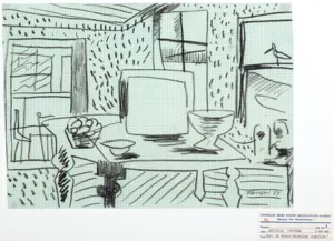 Wewnątrz passe-partout nalepka z wystawy: Fangor. 50 lat malarstwa, Galeria Zachęta, Warszawa 1 – 28 X 1990 (kat. bez spisu prac, na nalepce nr czerwonym tuszem: 92).