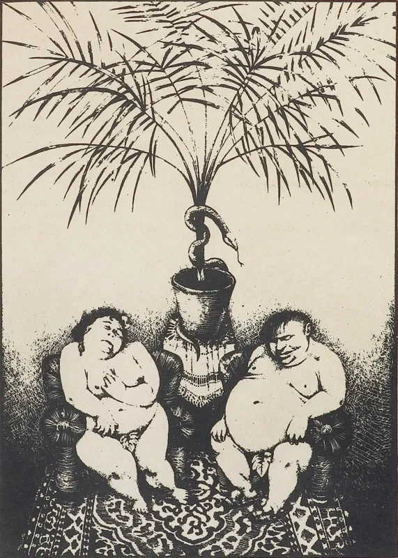 sygn. oł. pod ryc. l.: Adam i Ewa /litografia 15/50/, p.: Jerzy Duda Gracz