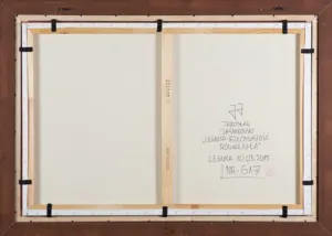 sygn. na odwr. na płótnie: JJ | JAROSŁAW | JAŚNIKOWSKI | „LEGNICA-RZECZYWISTOŚĆ | RÓWNOLEGŁA“ | LEGNICA 10.03.2015 | NR – 617 oraz naklejka pracowni artysty