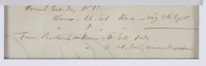 Na odwrocie rysunku – widoczne w okienku oprawy – notatki artysty wykonane atramentem; ponadto na tekturze zabezpieczającej rysunek od tyłu, pieczęć Muzeum Narodowego Ziemi Przemyskiej w Przemyślu oraz pracowni introligatorskiej w Krakowie.