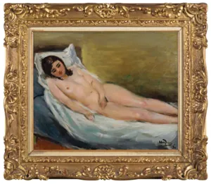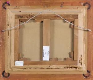 Na odwrocie, na górnej listwie krosna (czarnym markerem): 200 [w rombie], p.g.: VI 73; na prawej listwie krosna pieczęć z numerem 8F odnoszącym się do wielkości podobrazia; na poprzeczce krosna nalepka (druk): Henryk Hayden | „Akt leżący” | 1930 r. | PM 791; na dolnej listwie krosna nalepka domu aukcyjnego w Warszawie; p.d. pieczęć z numerem: 230673.