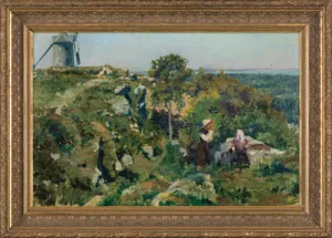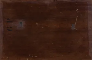 sygn. p.d. (drapana, wypełniona czerwoną farbą): P. MERWART Na odwrocie pieczęć z numerem 6P odnoszącym się do wymiarów podobrazia.