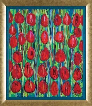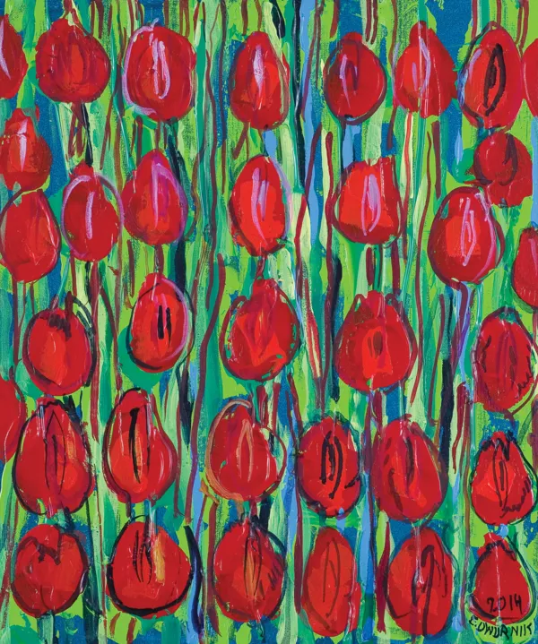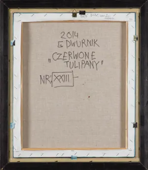 na odwr. na płótnie flamastrem: 2014 | E DWURNIK | „CZERWONE | TULIPANY“ | NR: XXIII [w ramce] -