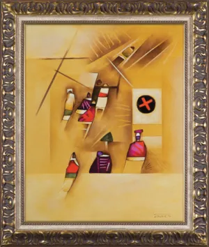 na odwr. na płótnie śr. flamastrem: P-74-2962; na p. i d. listwie krosna oznaczenia cyfrowe