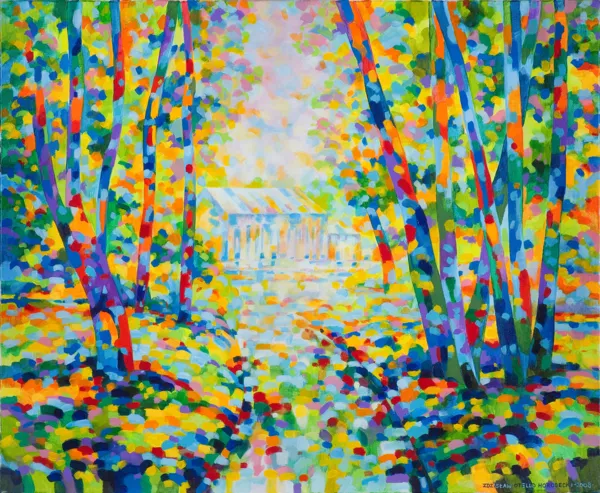 Według nalepki obraz powstał na plenerze, wykonany farbami akrylowymi Van Gogh, pokryty werniksem Talensa.