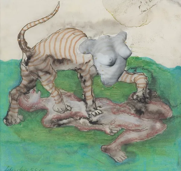 na odwr. oprawy p.d. napis dłg.: „F | „Postacie fantasmagoryczne | Jan Lebenstein | [1930-1962}, obok po l. oł.: M 75646