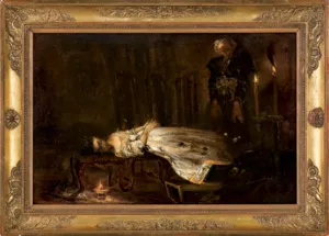 Rozczarowany i stęskniony za ojczyzną, rozpoczął prace nad obrazami ilustrującymi dzieła Juliusza Słowackiego. Śmierć Amelii pochodzi właśnie z tego okresu i przedstawia scenę z finałowego aktu dramatu wieszcza pt. Mazepa. Namalowany pod wyraźnym wpływem Matejki obraz utrzymany jest w charakterystycznej dla wczesnego okresu twórczości Malczewskiego, ciemnej tonacji. Zdominowany przez brązy, szarości i ugry, tworzące nostalgiczny nastrój, udramatyzowany został delikatnym światłem świec. Obraz jest również zapowiedzią pierwszych kompozycji przedstawiających Śmierć Ellenai.