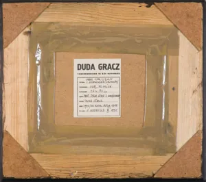 na odwr. nalepka autorska z danymi obrazu i dedykacją dla prof. Zygmunta Górki - wybitnego chirurga, doktora Honoris Causa Śląskiego Uniwersytetu Medycznego w Katowicach