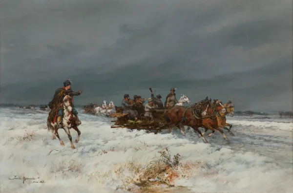 W ilustrowanym czasopiśmie „Die Gartenlaube“ w 1891 roku znalazła się drzeworytnicza reprodukcja późniejszej wersji Karnawałowego kuligu, pędzla Tadeusza Rybkowskiego. Posłużyła ona jako ilustracja krótkiego artykułu przybliżającego czytelnikom, zamierający już wówczas, zwyczaj organizowania kuligów w czasie ostatków. Polskim zwyczajem na zakończenie karnawału było organizowanie, przez najbogatszego w okolicy właściciela ziemskiego, kuligu. Ziemianin szukał dwóch przystojnych młodzieńców, którzy byli również dobrymi jeźdźcami, zlecał im wynajęcie zespołu muzyków, którzy wesoło przygrywali w pierwszych saniach. Następnie kulig rozpoczynał swą wesołą jazdę od domu do domu zbierając gości i ucztując. W ten sposób kulig się rozrastał, często do czterdziestu, pięćdziesięciu sań. Dwaj stewardzi jadącymi przed muzycznymi saniami pilnowali, by wesoła jazda nie opuściła majątku ziemianina. Najpiękniejsza para w towarzystwie ogłaszana była młodą parą i zabawa przeradzała się niejako w ich wesele. Panna młoda z panem młodym odgrywali najbardziej wyróżniającą się rolę. W końcu kawalkada wjeżdża do posiadłości bogacza, gdzie zaczynała się prawdziwa karnawałowa zabawa, która trwała do Środy Popielcowej.