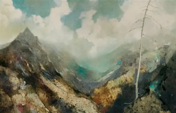 Z czasem pojawiało się coraz więcej dzieł bez narracyjnego ciężaru, w których najważniejsze było oddanie zmienności i piękna przyrody. Wśród wielu lirycznych „portretów“ Brzegów znacznie wyróżnia się prezentowana w katalogu Fantazja tatrzańska, będąca autorską wariacją na temat panoramy Tatr widocznej z wsi. Malowana z pamięci w zaciszu pracowni jest osobistym zapisem wrażeń z plenerów. Emocjonalny stosunek malarza do górskiego krajobrazu przejawia się także w zastosowanej poetyce malarskiej. Swobodny, niemal rozwibrowany ruch pędzla, celowe pozostawianie śladu włosia na gładkiej powierzchni i harmonijne zestawienia barw podkreślają impresyjny charakter przedstawienia. Ostra linia tatrzańskich szczytów niknie w mlecznej mgle, płynnie przechodzącej w zawieszone nad doliną, ciężkie obłoki. Z potęgą gór kontrastuje rachityczne, uschnięte drzewo osadzone na pierwszym planie. Przypominając o nieuchronności cyklu natury, niesie uniwersalne przesłanie o śmierci i przemijaniu, tak istotne dla artysty w końcowej fazie twórczości. Nastrojowa Fantazja to znakomity przykład pejzażu w romantycznym ujęciu – gwarantuje nie tylko kojące doznania estetyczne, ale także wzrusza i skłania do chwili refleksji.