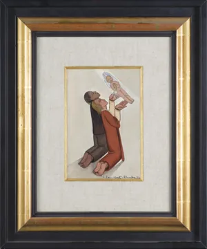 gwasz, papier żeberkowy naklejony na tekturę, 18,5 x 12,5 cm (w świetle passe-partout)