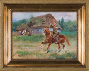 Na odwrocie sygn. (atrament): Jerzy Kossak | 1934 powyżej obcą ręką (ołówek): stwierdzam autentyczność