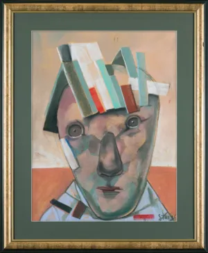 sygn. na odwr. p.d.: Stasys | Portret z dachem | Pastel | 64 x 69 | 2000