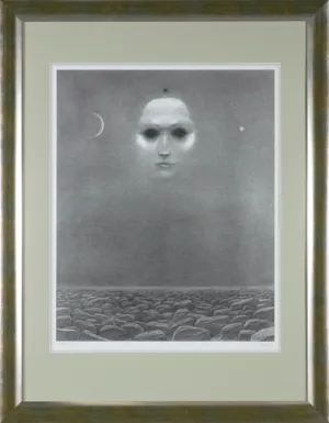 Autoryzowana graficzna replika rysunku czarną kredką, oryg. wymiary: 77 x 62 cm, reprodukowanego w albumie: Beksiński. Photographies, dessins, sculptures, peintures, [oprac. i red.] Anna i Piotr Dmochowski, API [AP International, Ltd.], wyd. I [Paryż] 1988/89, wyd. II poprawione [Paryż] 1991, s. 148, kat. 185.
