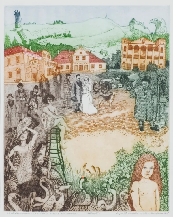 sygn. oł. pod ryc.L: ULICA KROKODYLI – TAM GDZIE PTASIA ATLANTYDA –, śr.: –97/100/ II –, p.: imp. [znak guzika] MARIAN PAWEŁ BOCIANOWSKI