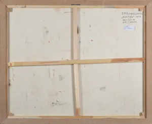 sygn. na odwr. flamastrem p.g.: S. MŁODOŻENIEC | „DRZEWA“ 2014 | 102 x 127 cm | olej/płótno, poniżej nalepka Abbey House z danymi obrazu