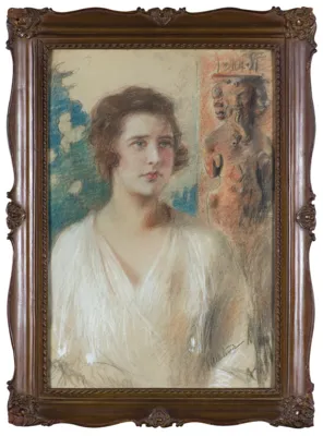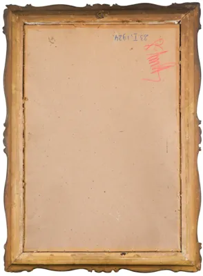 Na odwrocie p.g., przeciwnie do kompozycji, data (niebieską kredką): 23. I. 1924; obok (czerwoną kredką) nieczytelny podpis; ponadto na tzw. „zaplecku“ nalepka domu aukcyjnego w Warszawie.