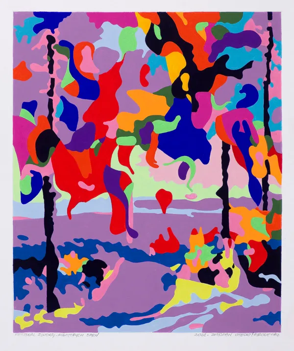 sygn. oł. pod kadrem kompozycji l.: FESTIWAL ZIMOWY. ALEATORYZM BARW, p.: 2022 ZDZISŁAW OTELLO HORODECKI, na odwr.: Festiwal zimowy | (ALEATORYZM BARWA) | 2022 | ZdzOtelloHorodecki