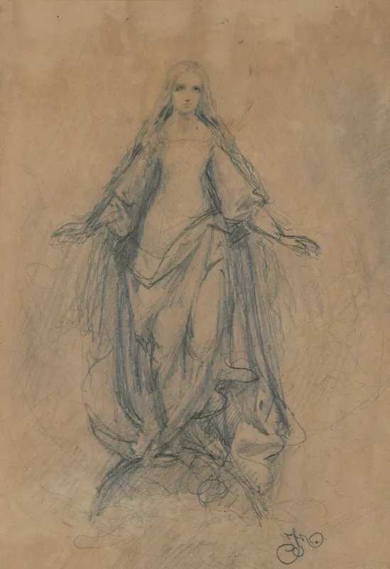 Wątki religijne w twórczości Matejki pojawiają się często. Artysta był osobą głęboko wierzącą, szczególnym zaś kultem darzył Matkę Bożą. Wśród jego najwcześniejszych dzieł znajduje się powstałe w roku 1852 roku Niepokalane Poczęcie. O szkicu wyobrażającym Matkę Bożą, stojącą na kuli i depczącą wężą, pisze Elżbieta Matyaszewska: Rysował Ją czternastoletni chłopiec i można zatem przyjąć, że wynikało to bardziej z jego wewnętrznej duchowej potrzeby niż jakichkolwiek studiów w tym kierunku prowadzonych („Wierzę w cuda nie od dziś”. Religia w życiu i twórczości Jana Matejki, wyd. TN KUL, Lublin 2007, s. 61)