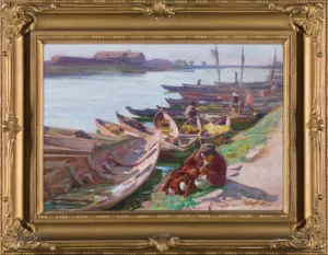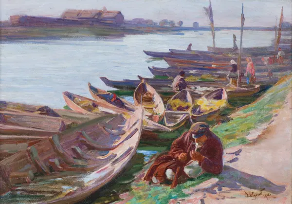 W czasie, kiedy powstały Łodzie nad rzeką, Wyczółkowski intensyfikował kolory, uważał, że w świetle słonecznym naturalne barwy giną, zmieniają się. Twierdził, że oko malarza powinno uchwycić barwy nałożone promieniami słońca i przenieść je na płótno. Impresjoniści francuscy na tym etapie wprowadzali do procesu twórczego teorię. Rozbijali widziane barwy na szereg dotknięć kolorów dopełniających. Wyczółkowski natomiast podchodził do natury bezpośrednio i z wiarą w prawdę jaką przedstawia mu jego oko. Obrazy z tego okresu charakteryzują intensywne barwy szafiru, granaty, odcienie rudości i wyjątkowo niebieskie partie nieba. Wyczółkowski zdecydowanie był malarzem plenerowym. Tylko stojąc wśród natury, mógł pochwycić wszystkie zmienne – różnorodność barw w zależności od efektów świetlnych, wilgotności, czy suchości powietrza.