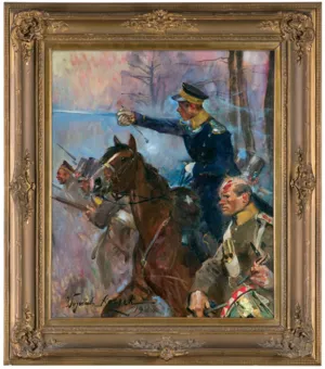 Prezentowany obraz jest autorskim nawiązaniem do Olszynki Grochowskiej, jednego z najsłynniejszych obrazów Kossaka, przedstawiającego żołnierzy 4. pułku piechoty liniowej walczących na przedpolach Warszawy w dniu 25 lutego 1831 roku. Olszynkę Grochowską, ogromne płótno o wym. ok. 250 x 350 cm, Kossak namalował w latach 1886-1887 i zaprezentował po raz pierwszy na...