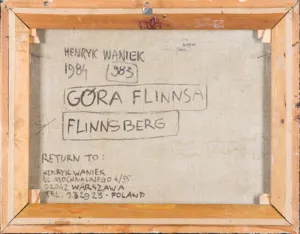 sygn. na odwr. na płótnie l.d.: HENRYK WANIEK | 1984 983 [w ramce] | GÓRA FLINNSA | FLINNSEBERG | RETURN TO: | HENRYK WANIEK | [adres]